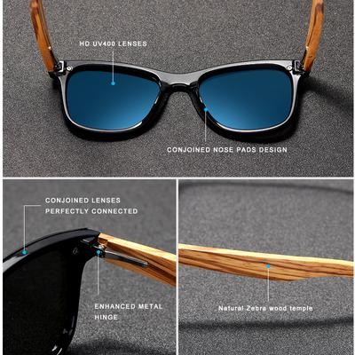 صفحة العنوان > أزياء الرجال > نظارة شمسية مربعة كينغسيفين للرجال نساء حمار وحشي الخشب مرآة