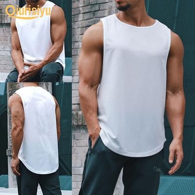 رجال ألوان صلبة بلا أكمام سترة اللياقة البدنية