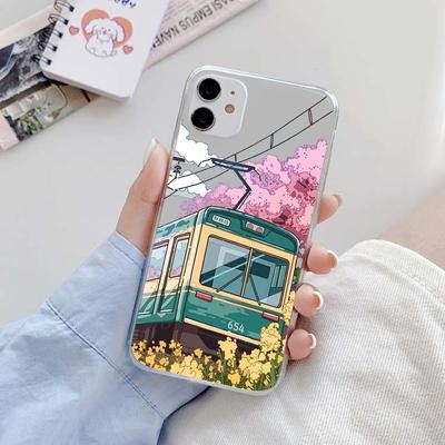 القطار الجمالي الياباني Mount Fuji Clear for iPhone 14 13 12 11 Pro Max 8 7 Redmi 12c