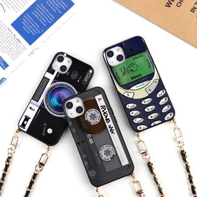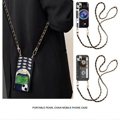 الشريط الرجعية الفاخرة Crossbody حزام القلادة سوار جلدي سلسلة الهاتف ل iPhone