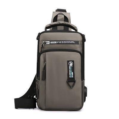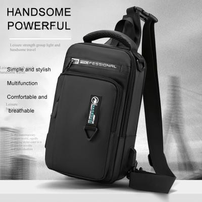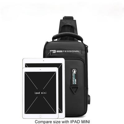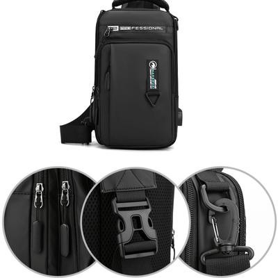 رجال نايلون مقاوم للماء حقيبة صدر USB صغير كروس سالينغ حقيبة ظهر واحد