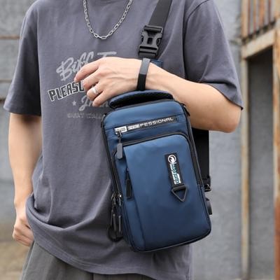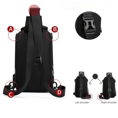 صفحة العنوان > الحقائب وحقائب السفر > رجال نايلون مقاوم للماء حقيبة صدر USB صغير كروس سالينغ حقيبة ظهر واحد