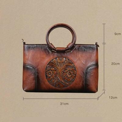 حقيبة نساء جلدية عالية الجودة من الجلد رجعية مصنوعة يدويًا أكياس كتف منقوشة