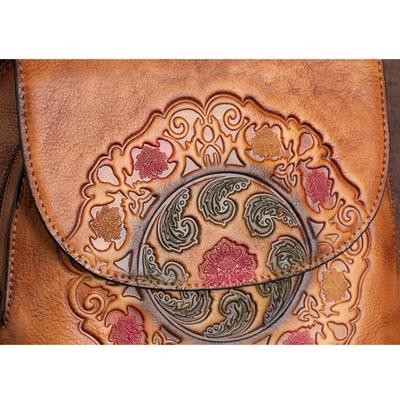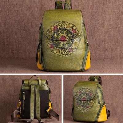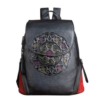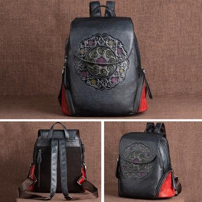 رجعية رجعية حقيبة ظهر جلدية حقيبة نساء الشتاء مصنوعة يدويًا حقيبة الأزهار الكبيرة