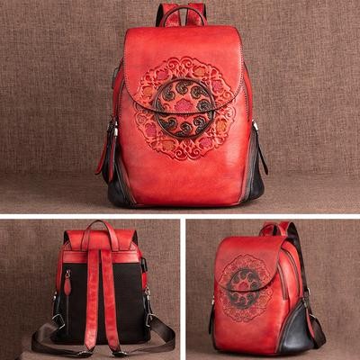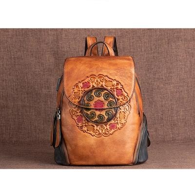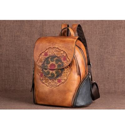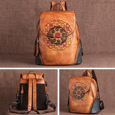 صفحة العنوان > الحقائب وحقائب السفر > رجعية رجعية حقيبة ظهر جلدية حقيبة نساء الشتاء مصنوعة يدويًا حقيبة الأزهار الكبيرة