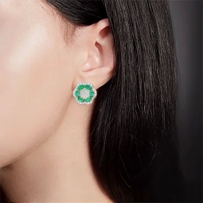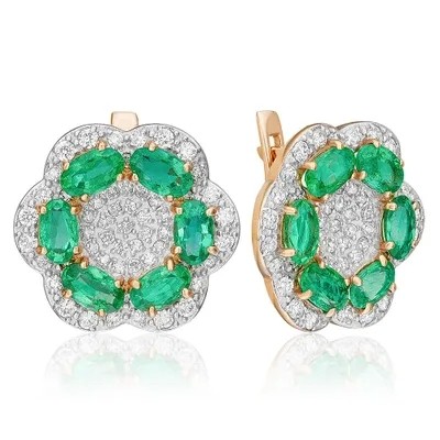 صفحة العنوان > مجوهرات > أقراط بلاتينا مع قفل إنجليزي مصنوع من 585 من الذهب الأحمر مع الزمرد والماس
